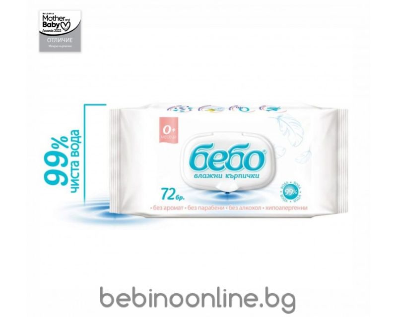 БЕБО Мокри кърпи 99% вода – 72 бр.капак