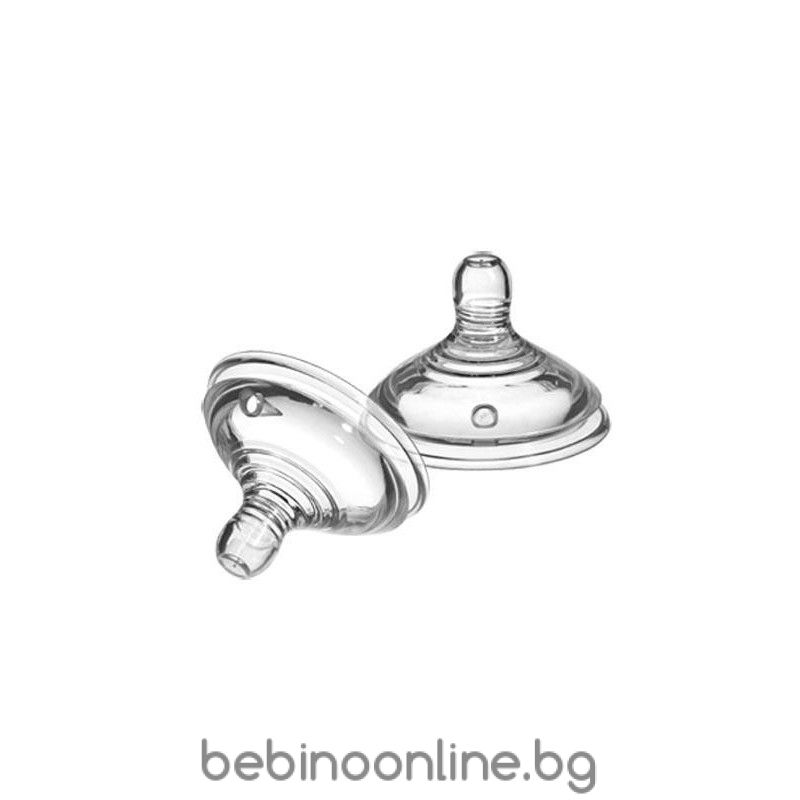 Характеристики: • Антиколикова клапа; • Форма, еднаква с майчиното зърно; • Меко естествено усещане; • От нежен силикон, фино разтягащ се по време на хранене за пълно прилягане; • Съвместим с шишета Антиколик+ от серията Closer to Nature • Подходящ за деца над 6 месеца Съдържание: •