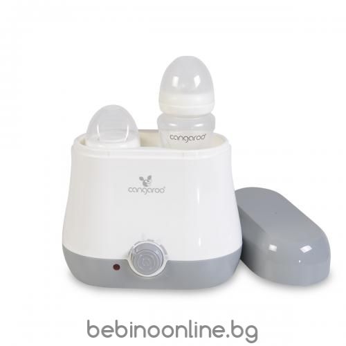 Възможност за затопляне на 2 шишета едновременно. С функция за стерилизиране на малки аксесоари - като бебешки биберони или залъгалки. Чрез големия механичен бутон се регулират лесно различните функции. Голямата вместимост на тялото на уреда - възможност за затопляне на различни размери и марки бебешки шишета. Функции: Автоматично изключване, когато водата свърши•стерилизация на малки аксесоари•Затопляне на бебешки шишета/ бурканчета•Затопляне на 2 шишета едновременно•Варене на пара на плодове, зеленчуци и яйца Вместимост: 2 шишета Мощност: 150W