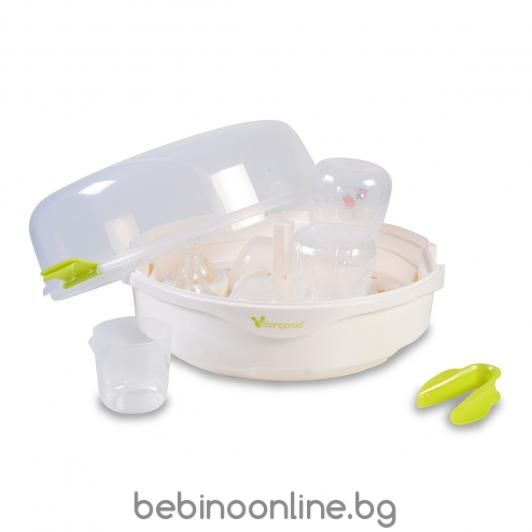 Описание:Микровълнов стерилизатор Fresh. Събира до 5 шишета и аксесоари. Подходящ за шишета с максимална височина до 15.5 см. Включена щипка за биберони/ шишета. Бърза стерилизация - максимум до 8 минути. Подходящ за микровълнови печки с мощност над 750W. Компактен и лек - идеален при пътувания. Подходящ за миене в съдомиялна.