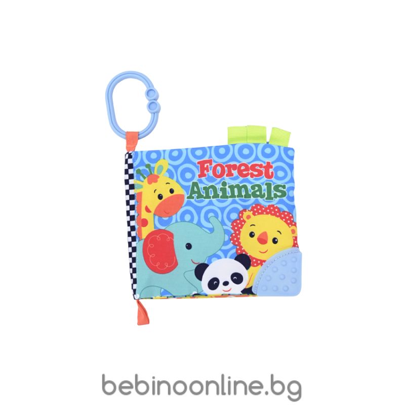 Описание:Мека текстилна книжка издаваща приятни шумолящи звуци.Ярките цветове,привличат вниманието и развиват сетивата на детето.В краищата на книжката има силиконова гризалка.