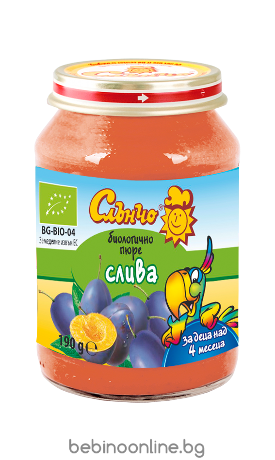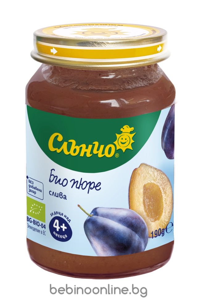 СЛЪНЧО БИО бебешко плодово пюре слива 4м.+ 190гр. 4259