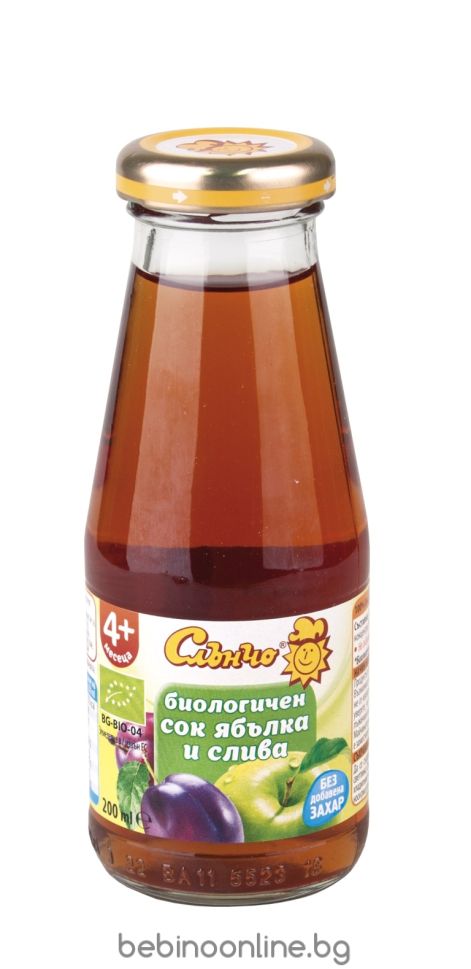 СЛЪНЧО Бебешки биологичен сок Ябълка и Слива 200мл.