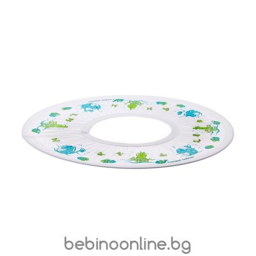 Характеристики: Уникалния дизайн предпазва лицето и очите на бебето от попадане на шампоан по време на къпането. Лесно се слага и приляга по формата на главичката Изработена от мека, нетоксична, леснопочистваща се материя.