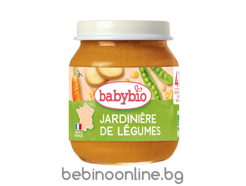 BABYBIO БИО бебешко зеленчуково пюре Градински зеленчуци 4+ м. 130 гр.
