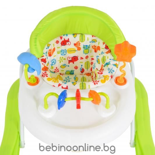 Oписание на продукта:Подходяща за деца над 6-месечна възраст, детската проходилка EKO осигурява комфорт, забавление и сигурност в един от най-важните моменти за детето – неговите първи стъпки. Проходилката е с лесно сгъваема конструкция, удобна за съхранение, тъй като заема малко място. Седалката е мека и тапицирана, като осигурява изключителен комфорт на бебето. Височината й може да се регулира в 3 позиции, в зависимост от ръста на Вашето дете. Оригиналното музикално табло с играчки и приятна музика, ще привлича вниманието детето и то ще се забавлява часове наред. За по-голяма безопасност на детето, особено когато е в близост от стълби и стръмни терени, проходилката разполага със силиконови стопери.