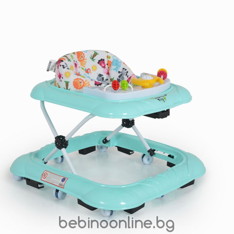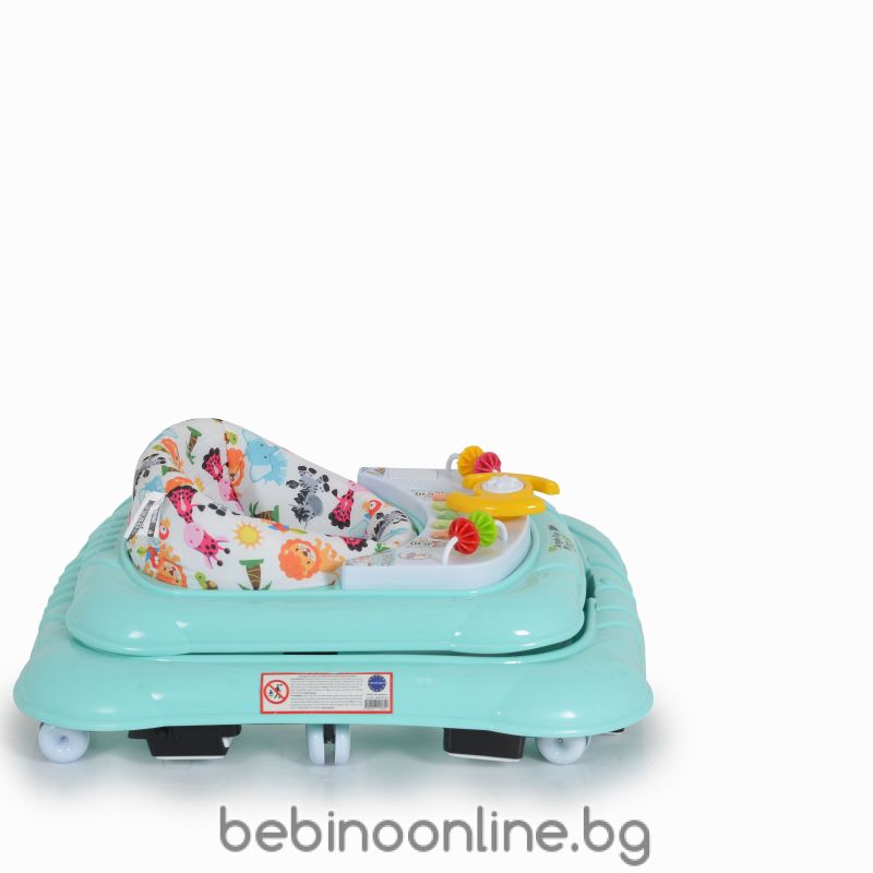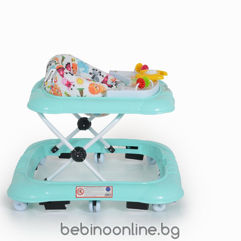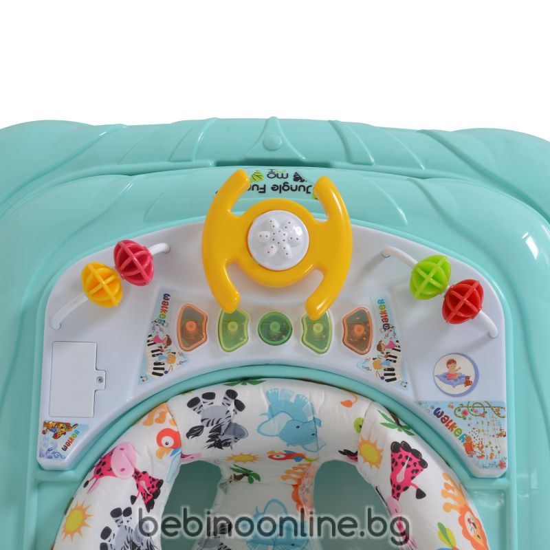 Описание на продукта:Проходилката Jungle fun е чудесен избор за деца на възраст от 6 месеца до достигането им на максимално тегло от 12 кг. Моделът ще задържи вниманието на детето, докато се учи да ходи, със своя интересен дизайн, 3 играчки и 5 бутона с мелодии със светлинна индикация. Нивото на височината се регулира в 3 позиции. Меката седалка и високата облегалка осигуряват комфорт и сигурност. Проходилката е с 8 колелца и 8 стопера за надеждност и безопасност. Когато не се използва, може да се сгъне до компактни размери.