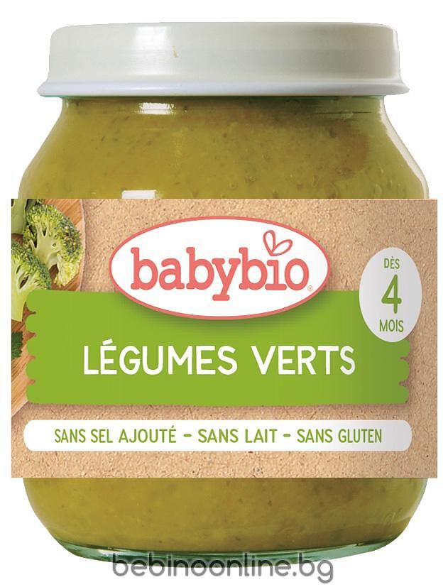 БЕЙБИ БИО Биобебешко зеленчуково пюре „ЗЕЛЕНИ ЗЕЛЕНЧУЦИ“, 4+мес.130гр.