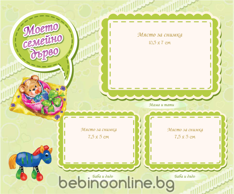 Бебешкото албумче е с размери: 24.50 / 20.00 / 1.00 см