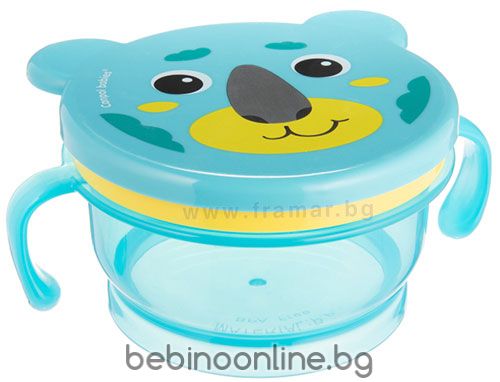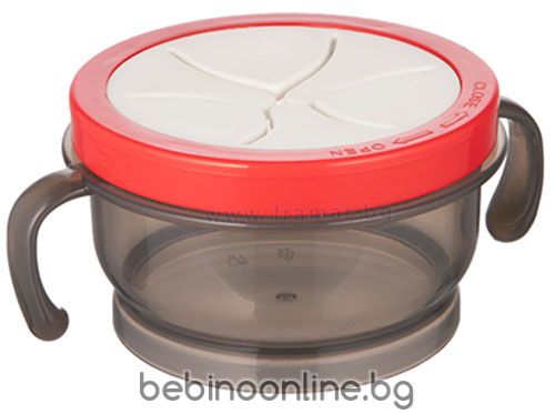 Инструкции за употреба: Поддържайте продукта чист. Преди първа и всяка следваща употреба измийте всички разглобени части (контейнер, капак, капачка) в топла вода с мек почистващ препарат, изплакнете обилно, залейте с вряща вода. Избягвайте груби или остри инструменти. Не преварявайте. Не стерилизирайте. Продуктът може да се мие в съдомиялна машина. Контейнерът може да се използва в микровълнова фурна. Ако затопляте храна в микровълнова фурна, не забравяйте, че съдът трябва да е отворен. Обърнете специално внимание, че затоплянето в микровълнова фурна може да доведе до неравномерна висока температура. Не поставяйте продукта в предварително загрята фурна и не го нагрявайте на газов или електрически котлон. Не пълнете контейнера с течности, тъй като те могат да изтекат. За безопасността и здравето на вашето дете.