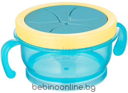 Описание:Кутията може да се използва за удобно съхранение на храна за Вашето бебе. Помага за развитието на двигателните умения - хващане и сръчността на пръстите. Развива самостоятелността на детето. Благодарение на специално проектирания силиконов капак с прорези, детето може да извади храната само, без да я изсипе. Перфектна за разширяване на диетата с метода BLW. Широкият отвор осигурява лесно пълнене с храна и почистване. Кутията е прозрачна, което Ви позволява да видите количеството храна в контейнера. След сваляне на капака продуктът може да служи като купа за хранене с удобни дръжки. Полезна както у дома, така и по време на разходка или пътуване с кола.
