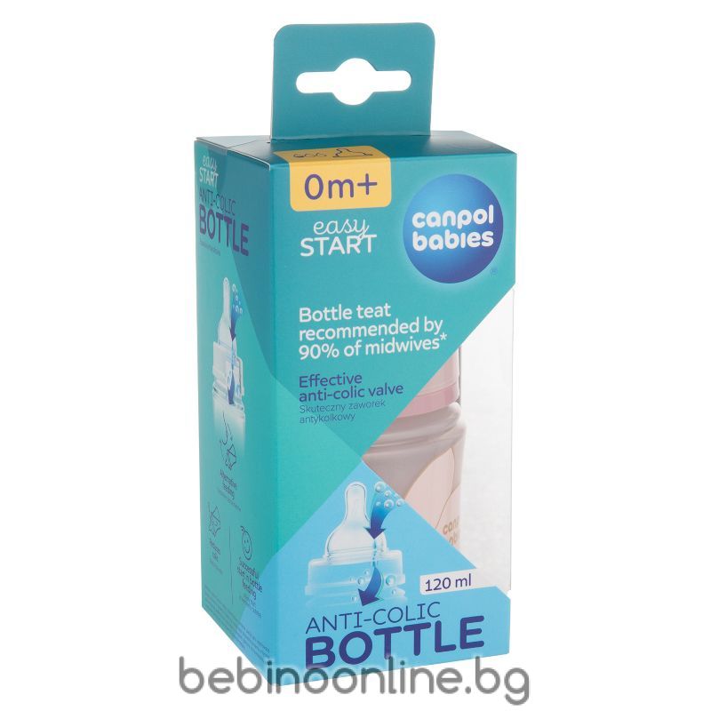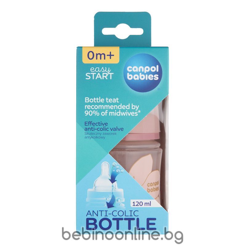 Описание:Шише антиколик с широко гърло Canpol, Easy Start Gold 120 мл, розово