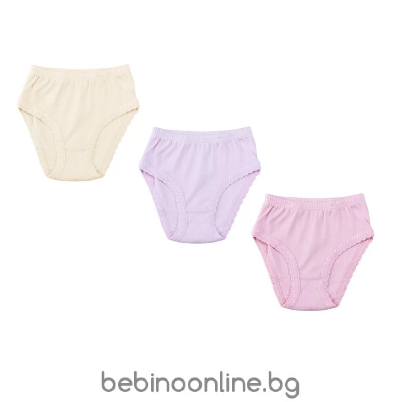 Описание:Детски бикини за момичета на Венера в различни цветове - розов, жълт, лилав и екрю и паскова . Изработени от ликра/ памук , с кант около бедрата и талията. Доказано българско качество.
