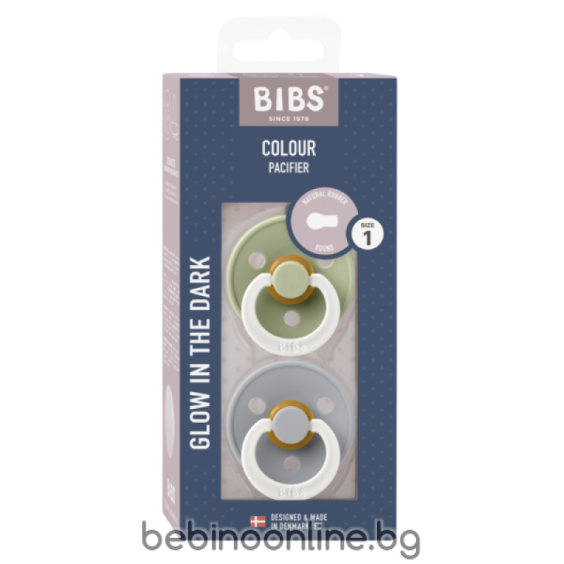 BIBS Биберони COLOUR Sage GLOW/Cloud GLOW, 2 бр.0-6 мес./110267/