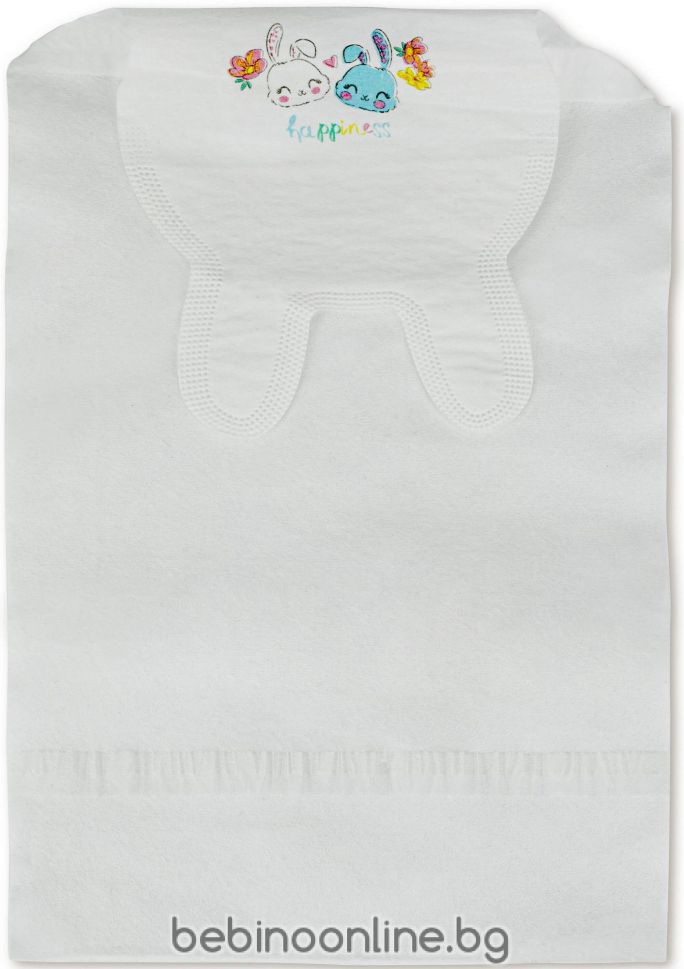 Начин на употреба:Поставете ръка в ушичките на кърпата и я прекарайте отдолу нагоре под дрехата на детето. Извадете горната част с картинката навън и залепете лепенката за дрехата. Може да залепите и долната лепенка отвътре на дрехата. След употреба отлепете кърпата и я изхвърлете с битовия отпадък.