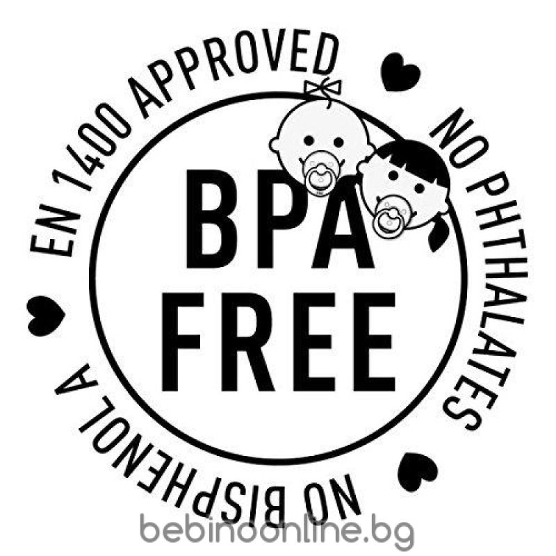 • Материал: 100% естествен каучук, полипропиленов щит – 100% свободен от BPA, PVC и фталати Отговаря на европейския стандарт: EN 1400 + A1.