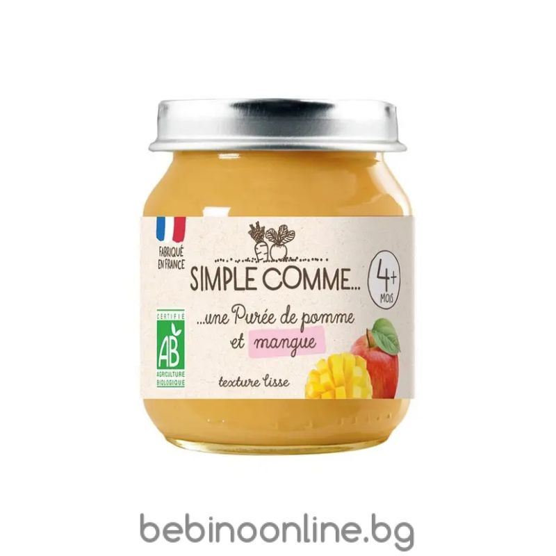 Начало ХРАНЕНЕ SIMPLE COMME Био бебешко плодово пюре Ябълка и Манго (4+ месеца) - 125г